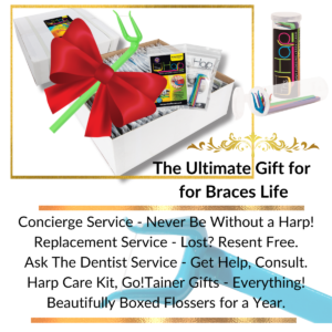 - NEW! BIGGER BONUS! Harp Ortho Kit Included! 4 Piece Kit includes everything else you need to floss happy: Harp Orthodontic Toothbrush, Container of Comfort Wax, Extra GoTainer, and the Clear Case with Side Pocket.